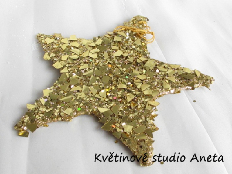 Hvězda pr. 15cm, bohatě sypaná zlatými třpytkami.
