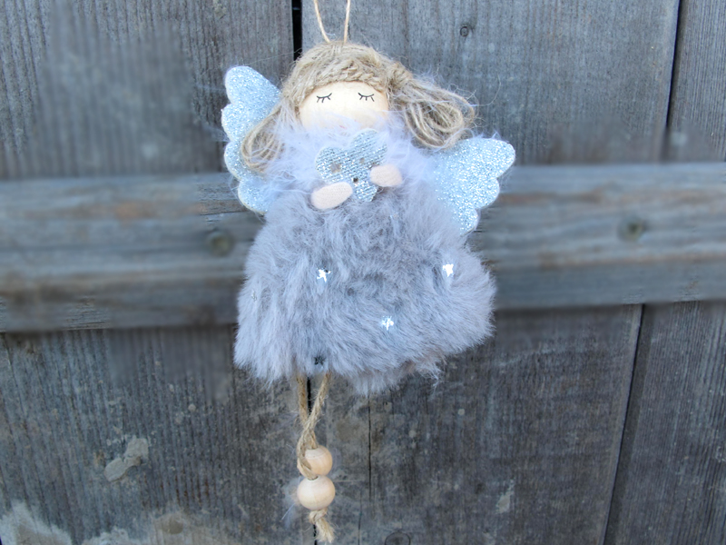 Textilní vánoční andělíček, k zavěšení, nalepení...11x8cm. Náhodný mix - andílek drží srdíčko, vločku nebo hvězdičku.