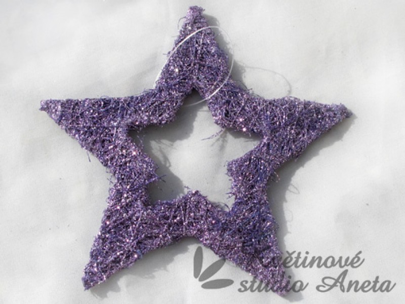 Hvězda pr. 15cm, bohatě sypaná fialovými třpytkami.
