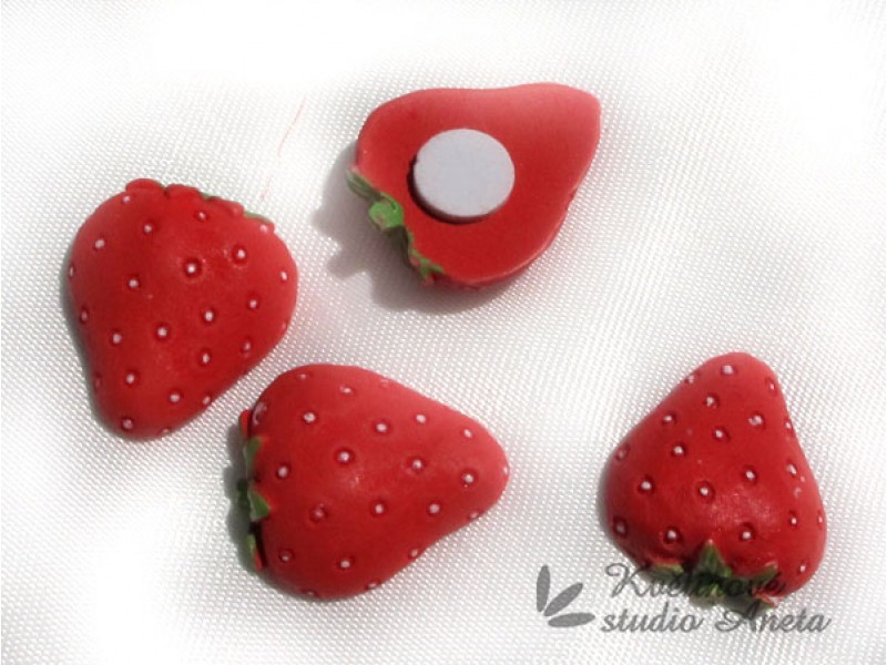 Keramická jahůdka s lepkou v zadní části. cca 2x2x0,5cm