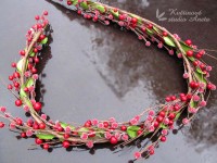 Na drátku. Kompletně tvarovatelná. Bobulky mají průměr cca 1cm, délka 120cm+30cm stopka.