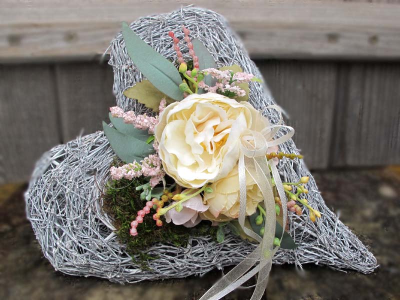 Srdíčko z šedého proutí 24x20cm, dekorované podzimní přízdobou.