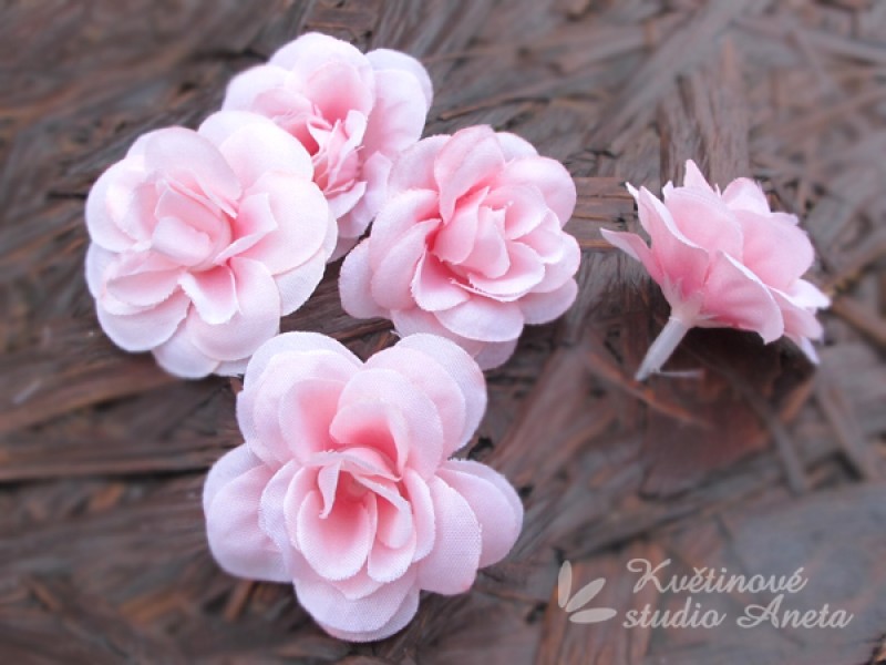 Velmi pěkný a dekorační látkový květ růže pr. 4cm.