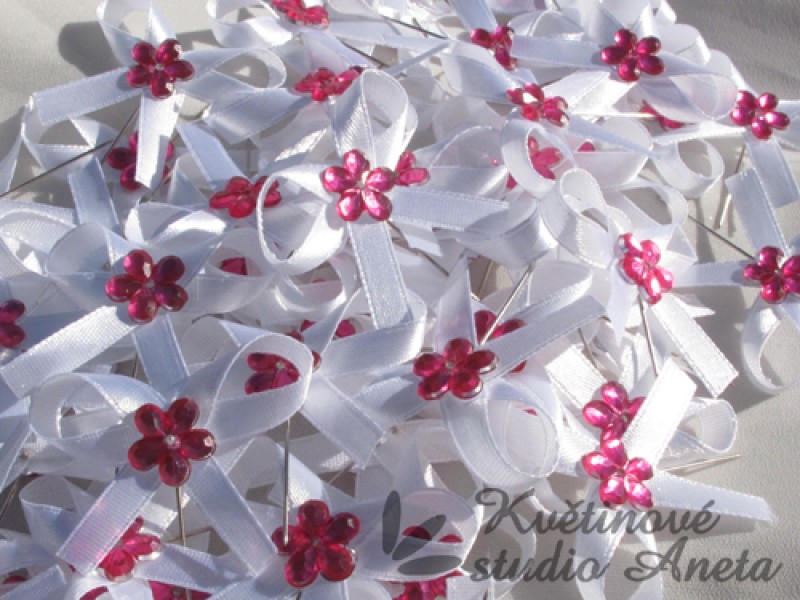Vývazky, svatební mašličky na myrtu s květinkou růžovou