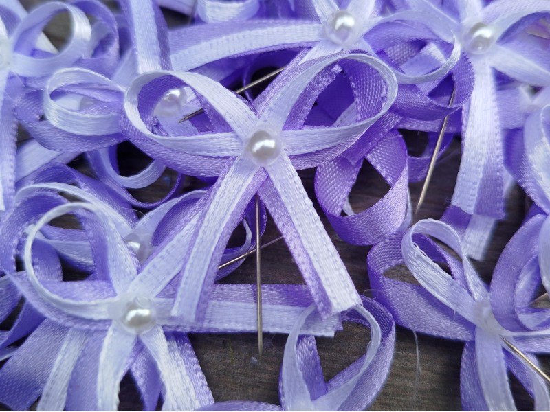 Vývazek, svatební mašlička na myrtu bílá + fialová