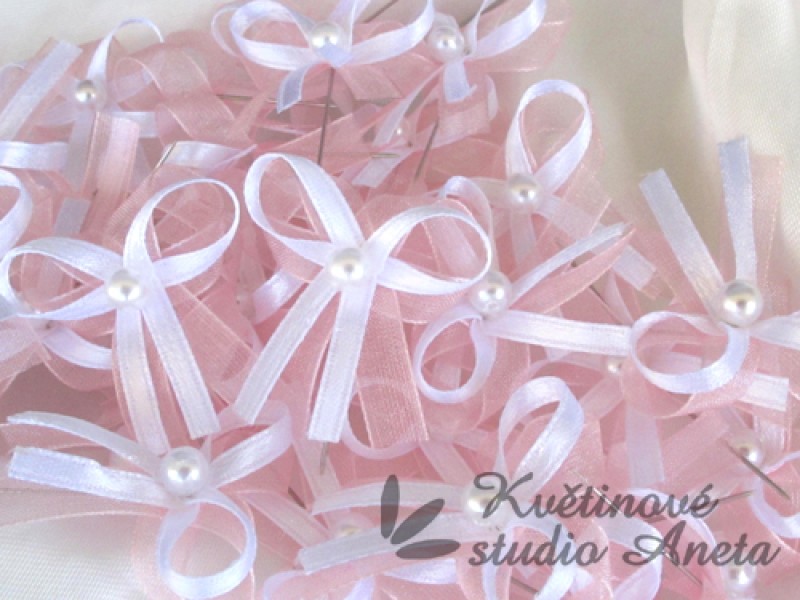 Vývazky, svatební mašličky na myrtu růžová šifon+bílá satén