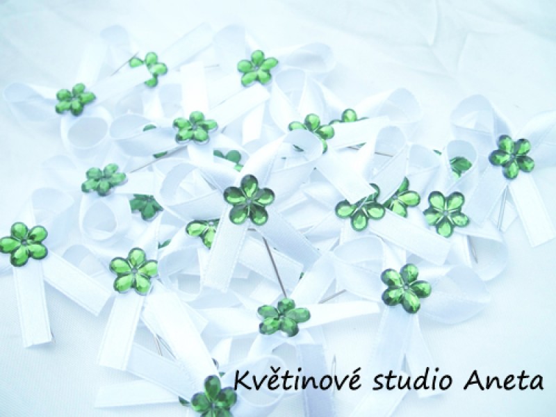 Vývazek, svatební mašlička na myrtu s květinkou zelenou