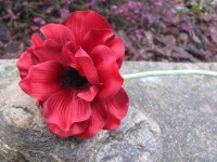 Tmavě červená sasanka. Celková délka 41cm, pr. látkový květ cca 7cm. ..