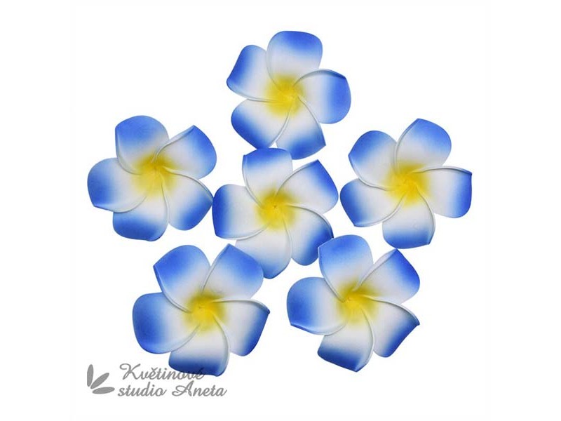 Pěnový květ plumerie, pr. cca 5cm. Bez stopky. Na výrobu ozdob do vlasů, svatebních kytic aj. 8,50/ks.