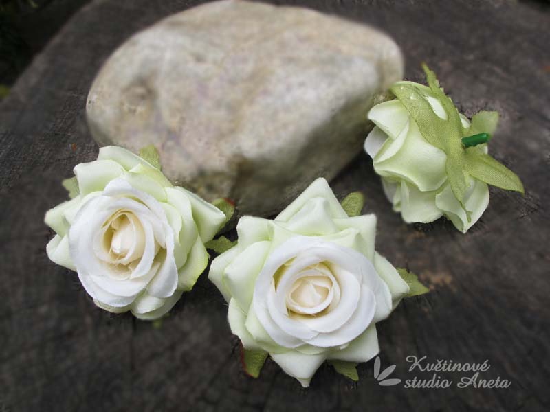 Velmi pěkný a dekorační látkový květ růže pr. 5cm.