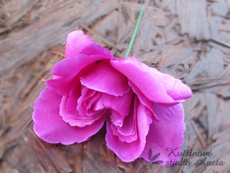 Dekorační látkový květ růže pr. cca 8cm, se stopkou 10cm.