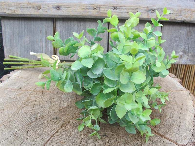 Poměrně věrohodná větvička eukalyptu. Celková délka 34cm, část s listy cca 20cm, Vhodná do celoročních i svatebních aranžmá...