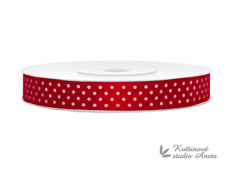 Saténová červená stuha s puntíky 0,6cm/25m