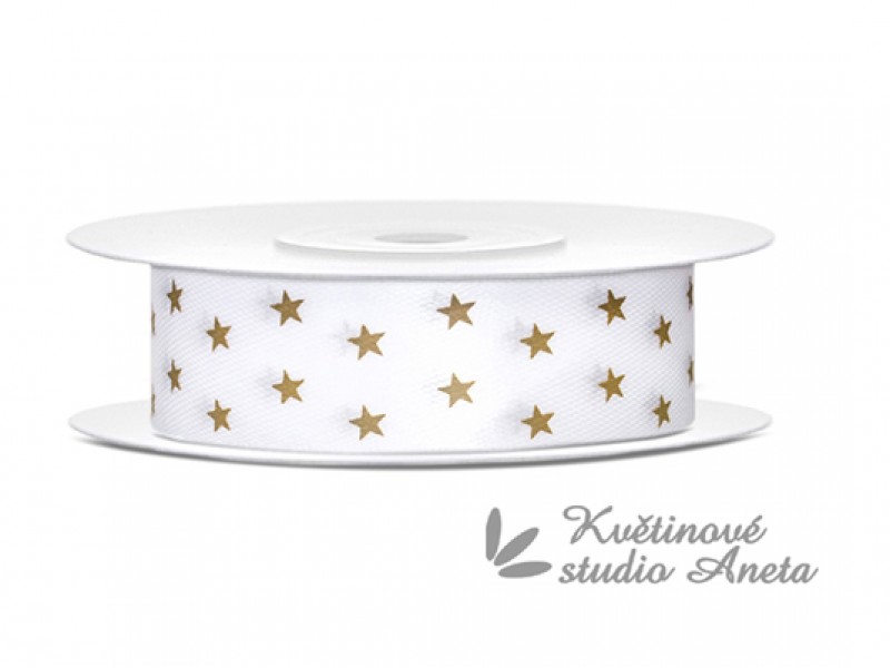 Vánoční stuha bílá s hvězdičkami 18mm/10m