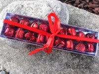 Velikost cca 2x2cm, k zavěšení. 18ks lesklých, ..