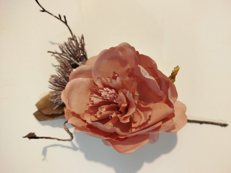 Lze použít jako solitérní, nejen vánoční dekoraci, do skupinových aranžmá i jednotlivé květy např. k dekoraci vánočních svícnů, věnců. Celková délka 18cm, květ cca 8cm.