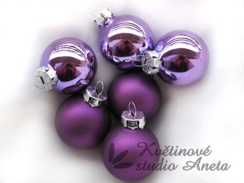 30ks skleněných, fialkových (lesklé a matné) vánočních baněk na pověšení, velikost cca 5,7 cm.
